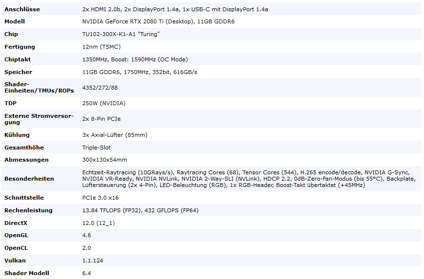 ASUS gewährt außerdem eine 3-jährige Garantie bei Abwicklung über den Händler. Wer mehr technische Informationen über die GeForce GTX 2080 Ti sucht, sollte dieser Webseite von Nvidia einen Besuch abstatten. |