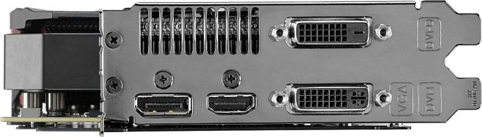 Auf der Slotblende sehen wir die üblichen Anschlüsse in Form von 1x HDMI 1.4a, 1x DisplayPort 1.2 sowie 2x Dual-Link-DVI (1x DVI-D und 1x DVI-I).
