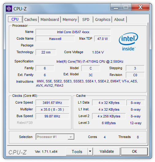 .: Intel Core i7-4710HQ Prozessor der vierten Generation (bis zu