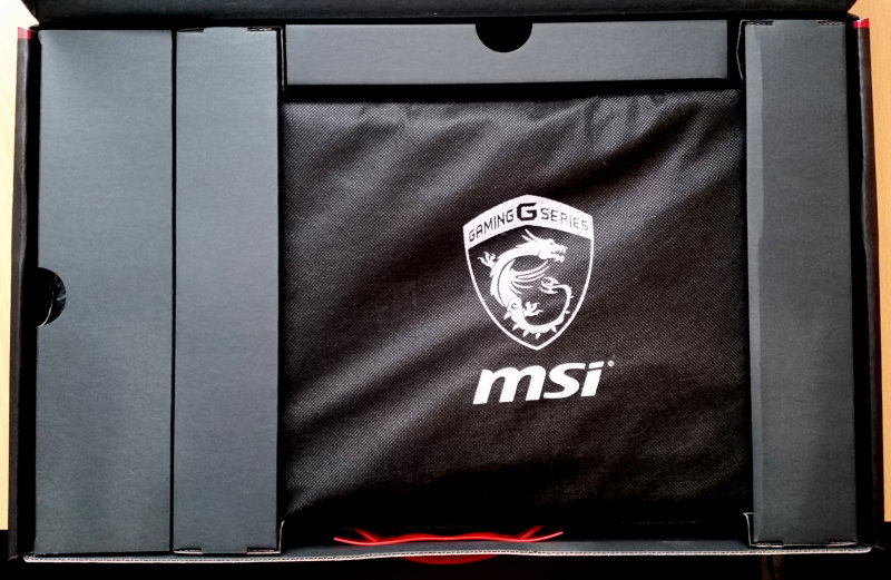 Das Notebook befindet sich gut verpackt in einer Schutzhülle und nochmals in einer Plastikhülle. Akku, Netzkabel und Zubehör sind in jeweils eigenen Bereichen in der Kartonage unter gebracht. |