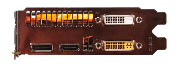 Auf der Slotblende sehen wir die üblichen Anschlüsse in Form von 1x HDMI 1.4a, 1x DisplayPort 1.2 sowie 2x Dual-Link-DVI (1x DVI-D und 1x DVI-I).