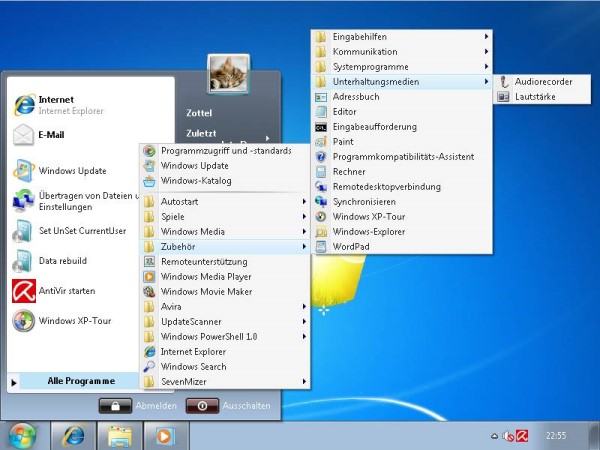 Wer weiterhin auf sein Windows XP System setzen will, aber nicht auf das schicke Design von Windows 7 verzichten möchte, nutzt am einfachsten das Programm SevenMizer.